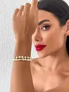 Pulseira Dupla com Pérolas e entremeios Folheados